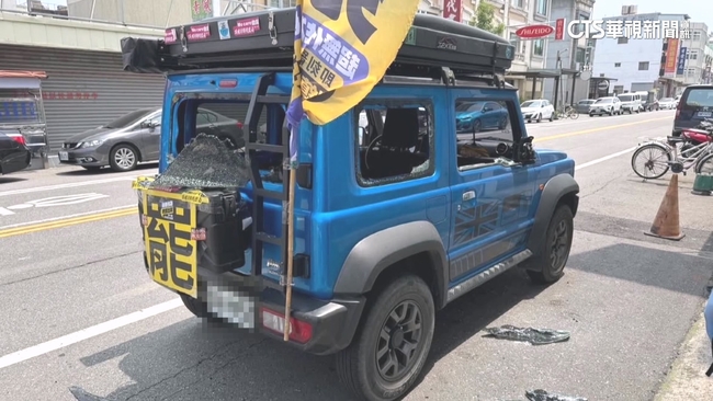 身穿藍色上衣,頭戴安全帽的男子,拿著球棒,朝停在路邊的藍色吉普車猛砸,駕駛座的車窗,被他砸破砸爛,後擋風玻璃也是,全部碎裂,大片破碎玻璃掉在馬路上,目擊民眾嚇到趕快報警,騎機車載小孩經過的家長,也嚇到趕快離開就怕被波及,拿球棒砸車的男子,犯案後騎機車離開,被砸的吉普車,旁邊插上罷免旗子,車尾後面,還有貼一個大大的罷免的罷字,這是苗栗縣罷免藍營立委陳超明和邱鎮軍的罷團宣傳車。