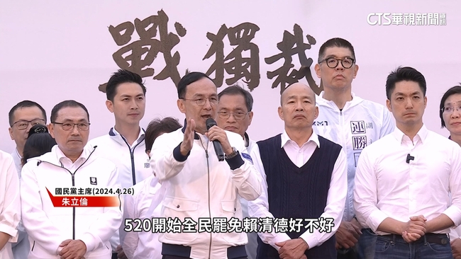 白話文就是,民進黨要抓準,「與罷免的距離」,但國民黨怎麼會服氣,國民黨支持者(2025.4.26)說:「反綠共戰獨裁,反綠共戰獨裁。」這場罷免大戰,也從街頭巷尾,延燒到總統府,國民黨主席朱立倫(2024.4.26)說:「520開始全民罷免賴清德好不好。」