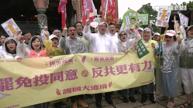 罷免第三階最後關頭,藍綠拚投票率,罷免團體推出護國大遶境,今天進入台中烏日,雖然下起大雨,還是澆不熄罷免志工熱情,民進黨秘書長林右昌,