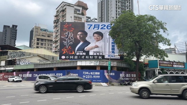 距離投票日越來越近,台中國民黨立委廖偉翔,開始大打出看板戰,寫下「怒火中燒」訴求反中火燃煤,掛在轄區車流量大的路口,吸引民眾注意,還