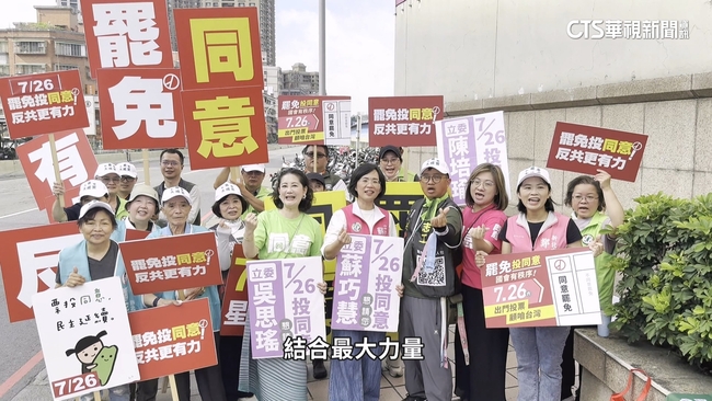 民進黨新北市主委蘇巧慧跟綠營立院黨團幹事長吳思瑤,肩並肩向選民彎腰請託宣傳罷免。兩人率隊帶上民進黨五一戰隊,在新北市各個罷免主戰場站路口,蘇巧慧強調用最短的時間,結合最大力量、發揮最大的宣傳效果,中央黨部當然也要出動。