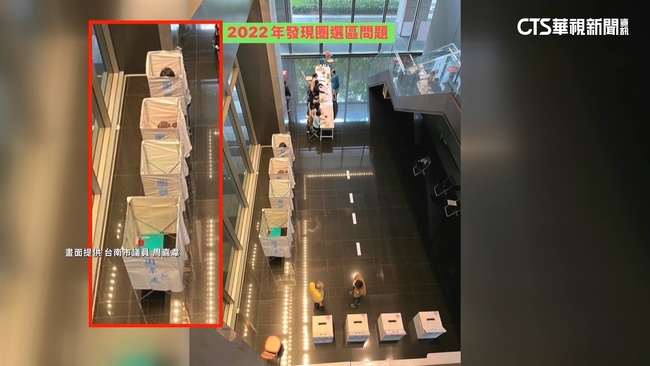 2022年九合一選舉出現疑慮,到了去年初的總統大選,圈票處還被移到,更容易看到的地方,經過反應後,投票所人員才找,各式各樣的布遮掩。記者黃柔蓉說:「重新回到新北市政府青年局這邊,在二樓的民眾,可以清楚看到一樓的選票。」一樓的選票,投票內容赤裸裸的公開,讓台南市議員周嘉韋,及新北市議員黃淑君,質疑這樣的投票動線設計,是不是在監視選民。