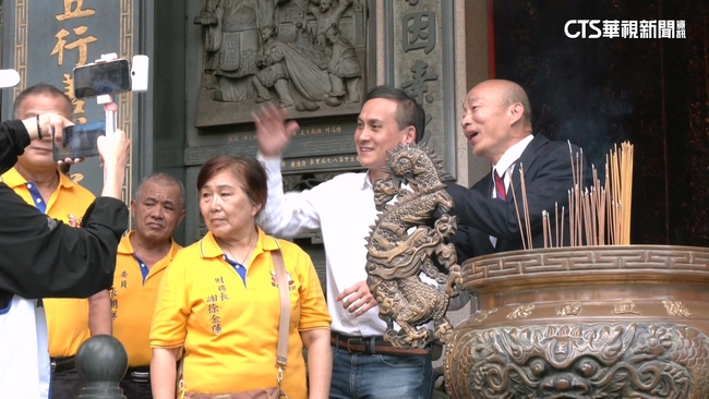 看國民黨立委葉元之表情,就知道能再合體立法院長韓國瑜多開心,掃街前兩人先到宮廟祈福,卻出現插曲,宮廟人員VS.立法院長韓國瑜說:「歡迎行政院院長韓國瑜,大德,立法院長,我們說卓榮泰,他會不高興。」