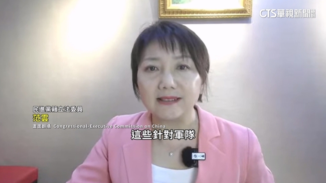 美國國會當地時間23日,針對中國對台政治戰舉行聽證會,並邀請民進黨籍立法委員范雲,透過視訊作證。范雲表示,中國對台灣的跨國打壓無所不在,包括台灣棒球國家隊,即使在世界12強棒球賽奪冠,仍無法穿著印有國名的球衣;副總統蕭美琴,先前在捷克被中國人員尾隨,更是對台灣政府人員,明目張膽的威脅。