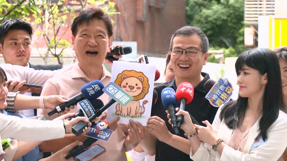 隨後羅智強拿出「小禮物」,他表示,這是AI描邊他自己蠟筆上色的東非獅子給趙少康,「趙大哥你沒辦法去東非,我把東非獅子請過來陪你投票。」趙少康表示「智強很有創意,相當有意思。」