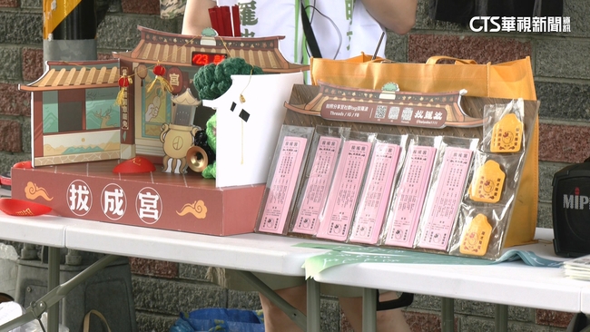 民眾說:「感謝媽祖,拔成功。」擲筊獻果求出一支上上籤,罷免國民黨立委羅明才團隊,迎戰823自製小型「拔成宮」,籤詩香火袋擺攤宣傳罷免,還有已經結束罷免行動的「港湖除銹」志工幫忙支援。