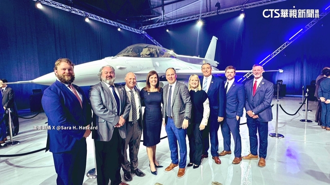 畫面中可以看到後方一架F-16V戰機,就是當時交機給我國的新機,三月底完成組裝測試。國防部副部長柏鴻輝與駐美代表俞大㵢都到場出席交機典禮。