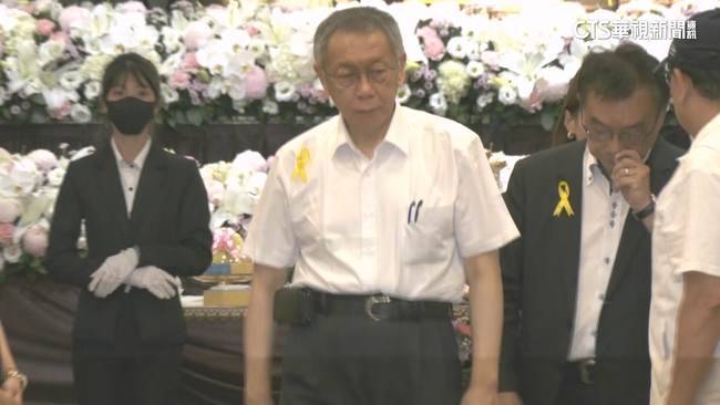 一身白色襯衫前民眾黨主席柯文哲,現身台北市第二殯儀館,前北市副市長彭振聲,7月初才歷經喪妻之痛,近日母親又過世,法官也特別裁准,柯文哲能以公開行程方式出席告別式,主持人說:「家屬答禮。」