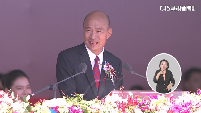 只不過話鋒一轉,以「堰塞湖水患」比喻台灣現狀,立法院長韓國瑜說:「被大罷免撕裂的台灣社會,我們必須用最快的時間,將這些隱形的,極具威脅性的,隱形堰塞湖,改造成一座一座護國神山。」劍指執政黨刻意提到罷免,與此同時觀禮台上,前總統蔡英文、陳水扁,全程沉著臉緊盯韓國瑜,但致詞結束後,雙方仍是微笑握手。