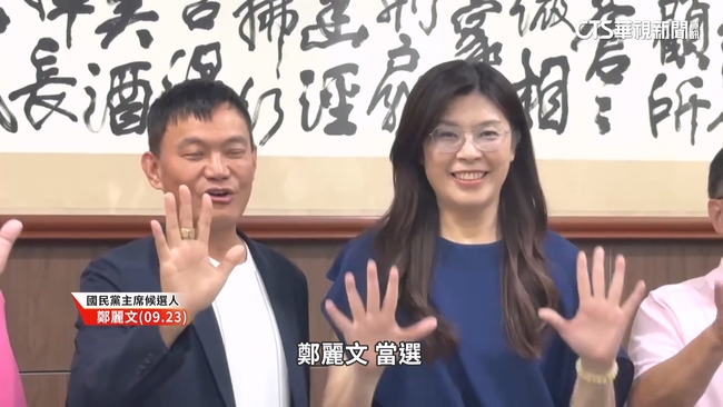 國民黨主席候選人鄭麗文說:「國民黨加油。」國民黨主席改選選前四天,身為候選人之一的鄭麗文,到桃園催票,國民黨籍桃園市議員們排排站,被視為藍營其中一股重要地方勢力的桃園議長邱奕勝表態了。桃園市議會議長邱奕勝說:「特別準備了一個包粽,要來送給我們的這個主席候選人。」