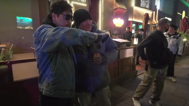 館長昨日在北京展開第三天行程,去逛了北京故宮、泡泡瑪特城市樂園,晚餐則是品嚐涮羊肉大餐,正當一夥人吃飽要走時,突然被這名男子攔下,詢問是否能合照,館長大方同意,沒想到男子先是合照時比了「倒讚」,還在結束後靠近館長耳邊低喃「中國、台灣,一邊一國」。由於太接近麥克風,因此全被清楚收音,館長當下也尷尬笑了兩聲,繼續與其他民眾合影。