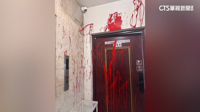 大門牆壁上,滿滿都是紅漆,監視器的線路也被扯斷,這處拳館的門口,所見之處全被潑漆破壞,事發過門口仍能看見些微痕跡,遭人惡意潑漆的,是聲援返送中在台港人湯偉雄,所開設的拳館,警方調閱監視器追查,發現身穿黑色衣服的一對男女,相當可疑案發前在附近徘徊,案發後更是立刻搭飛機離台。