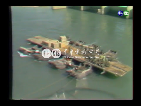 今天早上在新店青潭堰搶修攔水壩的過程中發生了一件意外的悲慘事件。一位國軍的少校連長陳金龍,在緊急的搶修被洪水沖走的浮舟時不幸地被急水給沖走了,至今下落不明,現在國軍官兵及新店當局都已經在全力的搜救之中。我們現在可以看到國軍官兵正在把被沖走的浮舟拉上岸去。