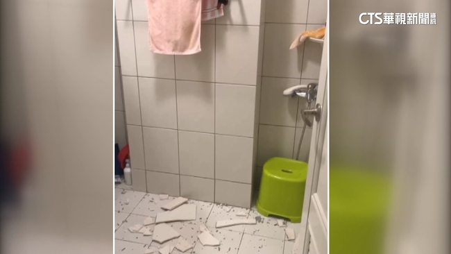 幸好當下浴室內沒有人,女屋主一家人沒有受傷,不過,想知道家裡磁磚安不安全?師傅說可以敲敲看聽聲音辨別。記者VS.磁磚師傅說:「(為什麼要這樣敲,裡面是不是空的是不是?)對,這個實心的。」