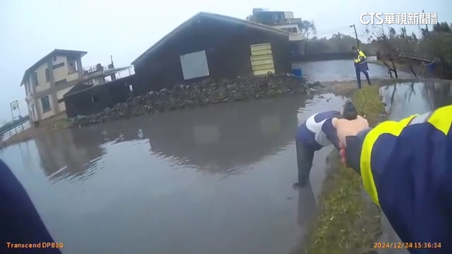 目擊農民說:「警察抓小偷。」警方持槍追捕畫面,被附近農民拍下,回到事發現場,還留有騎士的的雨衣機車,逃跑的腳印依然清晰可見,穿著的雨鞋甚至還卡在農田,目擊農民說:「我有聽到警車一直響,從那個方向騎到這裡,這台摩托車倒在這裡,跑給警察追。」