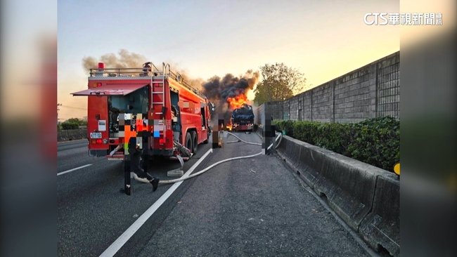 國道1號南向新營路段,昨(12)日下午,發生火燒車,一輛大貨車不明原因起火燃燒。