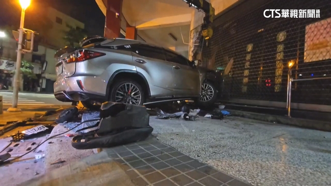 肇事車輛的車頭一半都被撞爛了,板金凹陷毀損嚴重,車殼零件四散,農會的外牆、柱子,敵不過撞擊,磚瓦散落一地,鐵們整片凹進去,現場一片狼藉,拖吊車業者說:「不好拖吊,因為卡在那邊,卡在鐵門那邊,摩托車已經吊出來了,卡在裡面。」