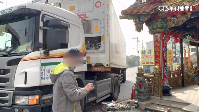 當地居民相當不諒解,因為這起意外的受害者,是護佑一方土地人民的土地公,17日早上9點多,屏東潮州鎮彭城路上,這輛大型貨櫃車駕駛,疑似為了閃避來車,將整台車往馬路邊靠,只是這一拐,土地公廟的屋簷裝飾雕像,當場被貨櫃撞了下來,讓當地居民很傻眼,電話訪問沒有跟土地公道歉。