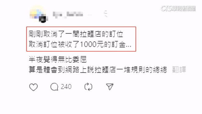 當事人說2月23日晚上11點,發現這間拉麵店2月24日中午有位置可訂,他先用網路下訂,但只過2個小時發現家裡有急事,臨時想取消卻發現訂金已經拿不回來,不過餐廳訂位網站明確寫著,用餐2天內取消或未到場者,一人將收取食材費500元,但實際詢問這間拉麵店業者,店家澄清,會設置這樣的訂位規定,主要是為了保障其他顧客的用餐權益,但沒有一定想要扣消費者食材費,可能是雙方出現誤會。