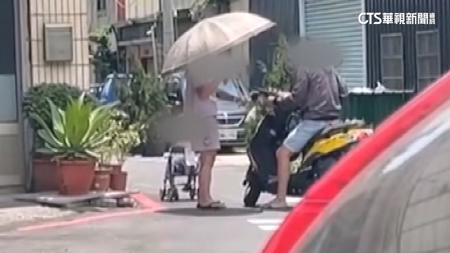 穿著紫色套裝,拖著嬰兒車的女子撐著陽傘,在路旁和一名機車騎士交換東西,但他們不是在敦親睦鄰,而是在交易毒品,一旁全程錄影的便衣員警立刻上前,還不忘先把孩子推到路邊。