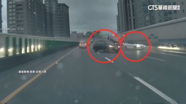 目擊民眾說:「他們兩個撞到嗎?對。」誇張事件發生在,5日清晨6點多,國道二號西向13.3公里處,八德往南桃園,兩輛車疑似變換車道時碰撞,發生事故,兩車的車門及車尾都有毀損,好在無人受傷。