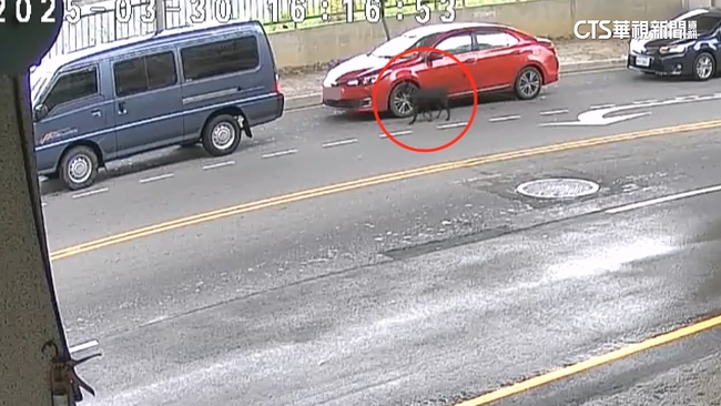 附近居民說:「看到狗了。」看到車往前開,黑狗也立刻追上去,不過最後還是沒追上,只能站在斑馬線上,看著紅車離開現場,將影片PO網的女子說,當時有人立刻去追紅色轎車。