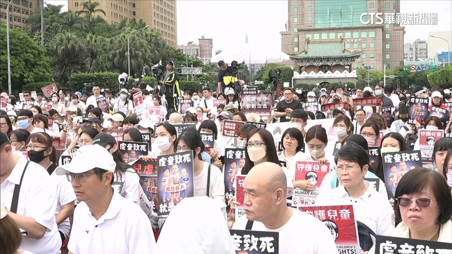 手舉標語身穿白色T-shirt,大批家長們帶著小孩走上凱道,各個神情凝重還有人哭紅了雙眼,這滴淚為了剴剴而流,更為了兒少保護走上街頭,參與集會家長說:「我自己也是三個小孩的媽媽,然後我從事的也是幼教相關行業,才1歲多的孩子有這樣的遭遇的時候,我覺得不可思議。」