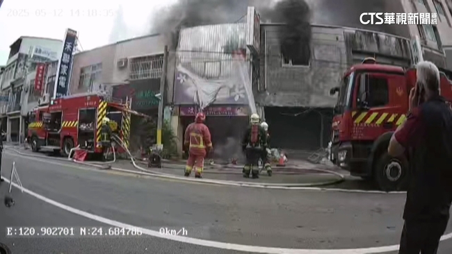 下午兩點多,苗栗頭份民族路旁的養生館,突然發生爆炸,店內的東西全部噴到馬路上,冒出濃濃黑煙,爆炸後,一名全身著火的女子,從店內跑出,她將著火的鞋子和帽子,全部脫下朝著路口跑走,接著大批員工,也從養生館跑出來,還有一名女子,到對面求救附近居民趕緊打電話報案。