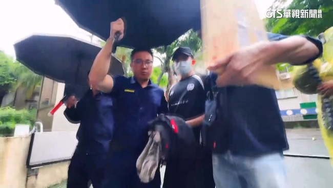 透過畫面可以看到孫生戴著口罩帽子,被帶下車,手上刻意用外套包覆著,眼神避開鏡頭。