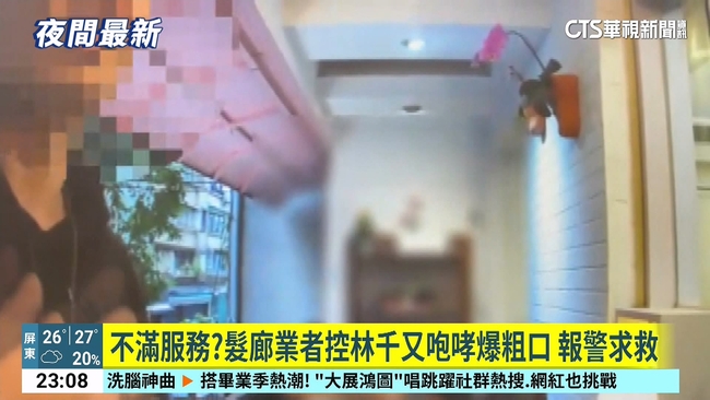 髮廊店長說:「她(林千又)就開始在現場大吼大叫,我們沒有理她,然後,她後來出來她就罵我,然後,說怎樣怎樣怎樣,反正就開始大吵大鬧,我們也沒收她費用,她就整個一直罵一直罵一直罵,然後後來就開始飆罵,這樣子,所以我其實,我是想要控告她。」