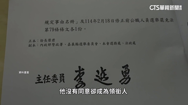 而被冒名的,還有罷免陳冠廷的領銜人77歲的徐姓男子!他表示,他曾擔任國民黨「黃復興黨部」常委,有黨部人士,打電話請當他領銜人,他沒有同意卻成領銜人,太太也變成「副領銜人」,夫妻倆還是收到中選會通知才知情!檢調4月,傳喚徐姓男子複訊後請回,5日檢調帶隊搜索國民黨嘉義縣黨部,帶回楊姓書記長、一名女性辦公員調查!縣黨部發表聲明表示,有請律師在場了解,強調全力保障職工同仁權益,呼籲檢調切勿濫用公權力試圖讓社會噤聲,製造寒蟬效應。