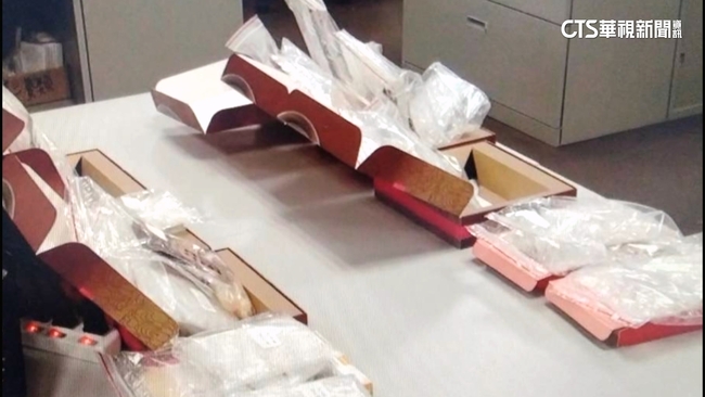 警方在機場及時截獲,準備出境的2名日籍男子,行李中大量料理包打開一看,裡頭都是用保鮮膜,包裹的安非他命結晶體,總計10盒料理包中藏了2公斤重。