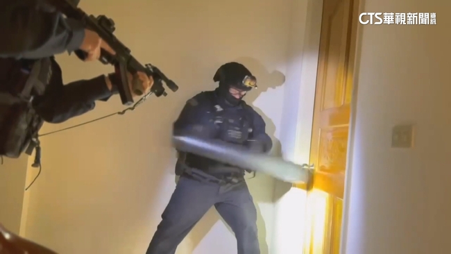 員警全副武裝拿著破門器撞門攻堅,衝入屋內裡面擺放好幾台電腦,警方查出,這個藏身台中豪宅的水房被詐騙集團,當作犯罪的據點,警員說:「有沒有證件,看一下。」