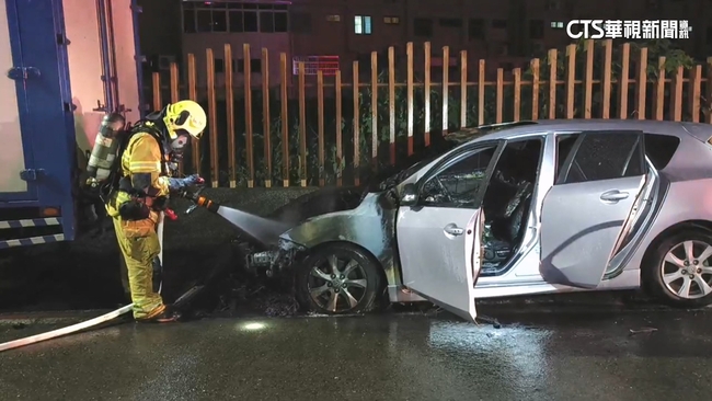 昨(4)日深夜,高雄楠梓惠勇街一部停放在路邊的自小客車,不明原因起火燃燒。