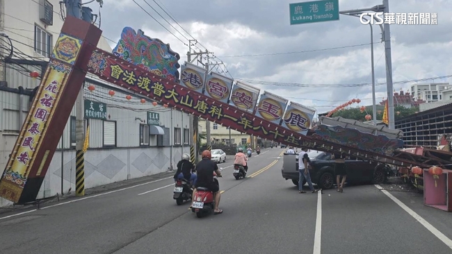 據了解,被撞倒的是鹿港玉安宮的廟會牌樓,廟方睽違18年,舉行盛大的普渡慶典,沒想到牌樓卻被車子撞塌,幸好慶典已經圓滿完成,事故也沒有波及到其他人車。