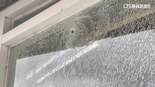 民眾說:「這邊在吵架了啦。」一群人在馬路上吵成一團,接著就上演街頭槍擊案!民眾說:「地上有那個牌子就是彈殼,(這麼多)嗯。」民眾一早發現彈殼,趕緊報案,警方到場採證,就見附近檳榔攤,玻璃被子彈射穿,周邊碎成蜘蛛網狀,而這枚子彈一路射穿裏頭木簾。