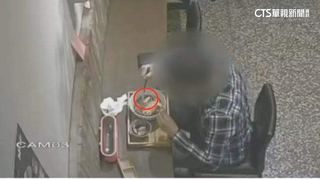 男子坐在位子上吃麵擦了擦嘴巴,接著起身到旁邊拿醬料,但醬料疊裝的,竟然只有一張長條衛生紙,把衛生紙倒下去之後,他還轉頭往旁邊看了幾眼,用筷子喇一喇再吃了幾口,最後整盤端到櫃檯。