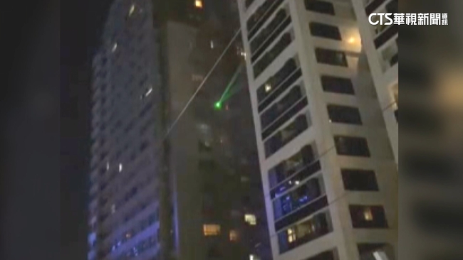輕軌準備進站,但這時遠方大樓卻突然射來一道道綠色的雷射光直衝駕駛室,讓駕駛眼睛相當不舒服,輕軌工作人員VS.員警說:「有沒有,就他,對就他,好好,他現在照我,OK。」警方獲報到場,在大樓拿雷射筆惡作劇的人,竟然還在繼續亂照,不把員警看在眼裡,甚至把輕軌交通安全當成兒戲。記者張權說:「警方接獲報案,根據畫面來到,這處社區大樓來進行調查,而嫌犯所在的大樓,距離輕軌軌道只有,一條馬路的距離。」