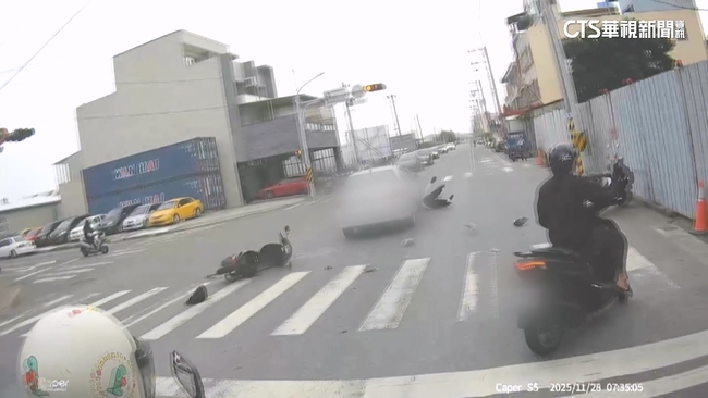大批騎士在路口停等紅燈,下一秒突然,一輛轎車突然衝撞,其中兩名騎士,甚至被撞飛,突如其來意外,讓當時,不少目擊騎士嚇出一身冷汗,趕緊通報警消到場救援,這宛如保齡球般的驚險事故意外,就發生在昨(28)日上午。