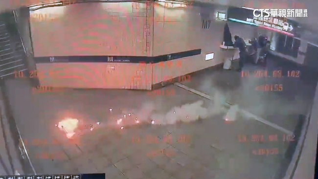 陣陣白煙不斷竄出,捷運台北車站M7出口,一片白茫茫,戴著防毒面具的嫌犯,丟擲煙霧彈造成濃煙瀰漫,接著另一名男子,受傷倒臥在地動彈不得,這還沒完嫌犯接著行凶,鎖定人聲鼎沸的捷運中山站,目擊民眾說:「他有煙霧彈,啊,啊啊。」