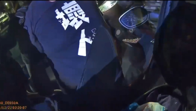 士林警分局表示,今(22)日凌晨0時59分獲報後,隨即調閱監視器追查,鎖定一名85年次的謝姓男子,在文林路一帶持刀亂晃,之後騎車離去。警方在凌晨2時15分,抵達謝男位在社子的住處將其逮捕到案,而他當時身穿「壞人」二字上衣。