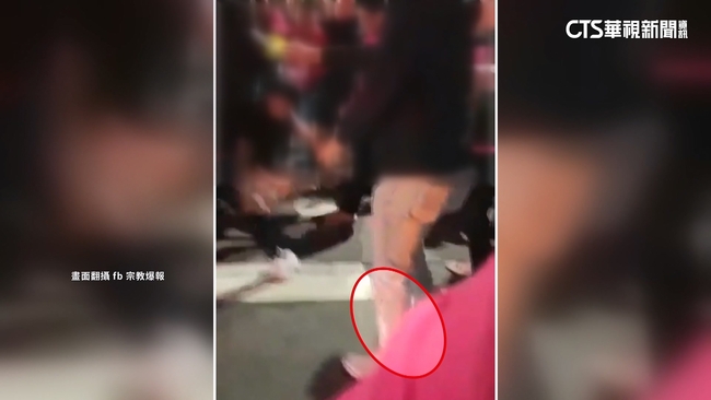 數十名男子聚集在馬路中央,其中幾個人打成一團,還有人跳上車頂繞過去,跟著追打,現場陷入一片混亂,1名黑衣男子脖子上的金項鍊,突然被扯斷掉落,旁邊另一名白衣男子一個箭步衝上前,迅速彎腰撿了起來,這名男子左手插在口袋,假裝沒事慢慢走開。
