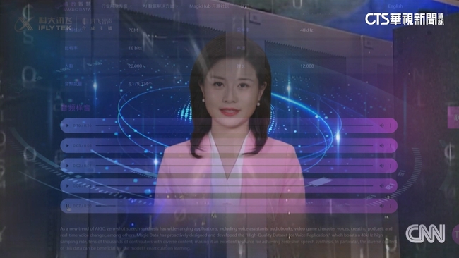 AI虛擬主播:「現在用廣東話為您播報,現在用英文為您播報。」國安局點名中共透過深圳的「科大訊飛」公司,以語音資料庫結合虛擬形象打造AI主播,加上晴數智慧科技等公司開發AI智能語音系統。