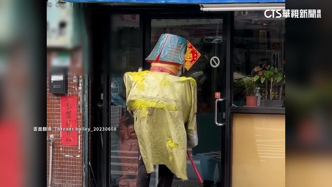一身土地公裝扮,站在門口不斷搖鈴,店家聽到聲響前來應門,脆影片店家投錢,女子把硬幣,投進紅色的桶子裡,土地公心滿意足轉頭離去,不過一轉身,可直接嚇壞附近民眾,脆影片狗吠,上身大大的搖來晃去,黃色上衣破破爛爛,還有縫補痕跡,但這樣的裝扮走在台北街頭,還挨家挨戶敲門要錢。