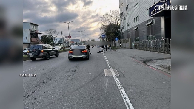 根據警方調查,當時開車是宋姓駕駛,他開朋友的車代步,疑似不熟悉車況加速過猛失控,從後方撞飛54歲的張姓女騎士,造成婦人全身多處擦挫傷,所幸婦人意識清楚,後續被送往醫院治療,附近居民說:「那邊都是改裝車的都是一些年輕人,年輕人開車特別快,那個排氣管又特別改裝大聲的有沒有,聽到啵啵啵那種,整條路就聽到他的聲音,就到那邊就撞到了啊。」