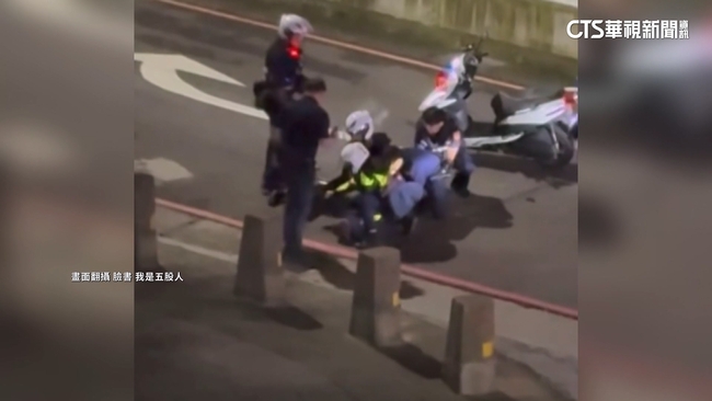 員警說:「不要再叫了,他拿刀。」眼見情況危急,多名警力逐漸包圍,另名員警騎著警用機車,將嫌犯撞倒在地,嫌犯被壓制在地不斷掙扎,還被搜出不少毒品,7日深夜警匪追逐。