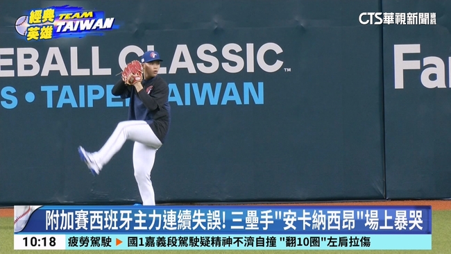 WBCQ附加賽,昨(25)日進行台灣隊和西班牙隊的生死戰,在第六局的時候,西班牙三壘手安卡納西昂,連續發生兩次失誤,直接送台灣隊兩分,因此在場上淚崩。