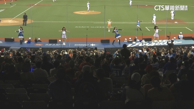 日本北海道火腿鬥士,今(1)日在台北大巨蛋展開交流賽,對戰中職統一獅。除了球場上的比賽精采,場邊的啦啦隊應援也是一大焦點。台日啦啦隊員們,戴著狐狸耳朵和尾巴,在球場邊一起跳風靡日本的「狐狸舞」,讓全場球迷嗨翻天。