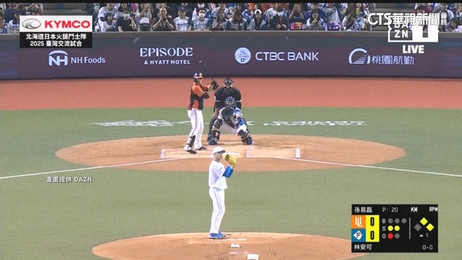 25日才在經典賽資格賽附加賽,面對西班牙登板,中繼1.2局無失分的孫易磊,這天回歸母隊,改披日本火腿戰袍先發。儘管一上場先投了保送,接著飛球抓到出局數後,又投出4壞球形成一二壘有人,但還是順利化解危機。賽事主播說:「揮棒落空,149(公里)的速球,孫易磊,K掉了林安可。」