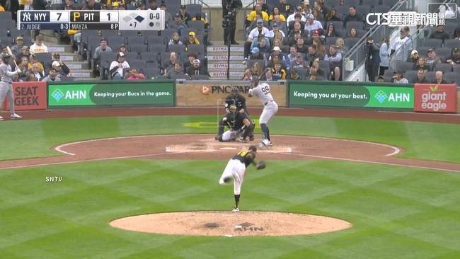 「法官」這發兩分砲,幫助洋基以9比1領先匹茲堡海盜,最終也以9比4贏球。而這一轟,也讓他在生涯前1000場出賽,累積史上最多的321轟。也追平棒球之神貝比魯斯,在洋基前1000場出賽,隊史最多轟的紀錄。此外,另外,開季前7戰,繳出6轟、17打點,也是大聯盟史上最佳表現。賽事主播說:「Aaron Judge的打擊,飛得很高,在右外野方向,這球飛出去啦,Aaron Judge的兩分砲。」